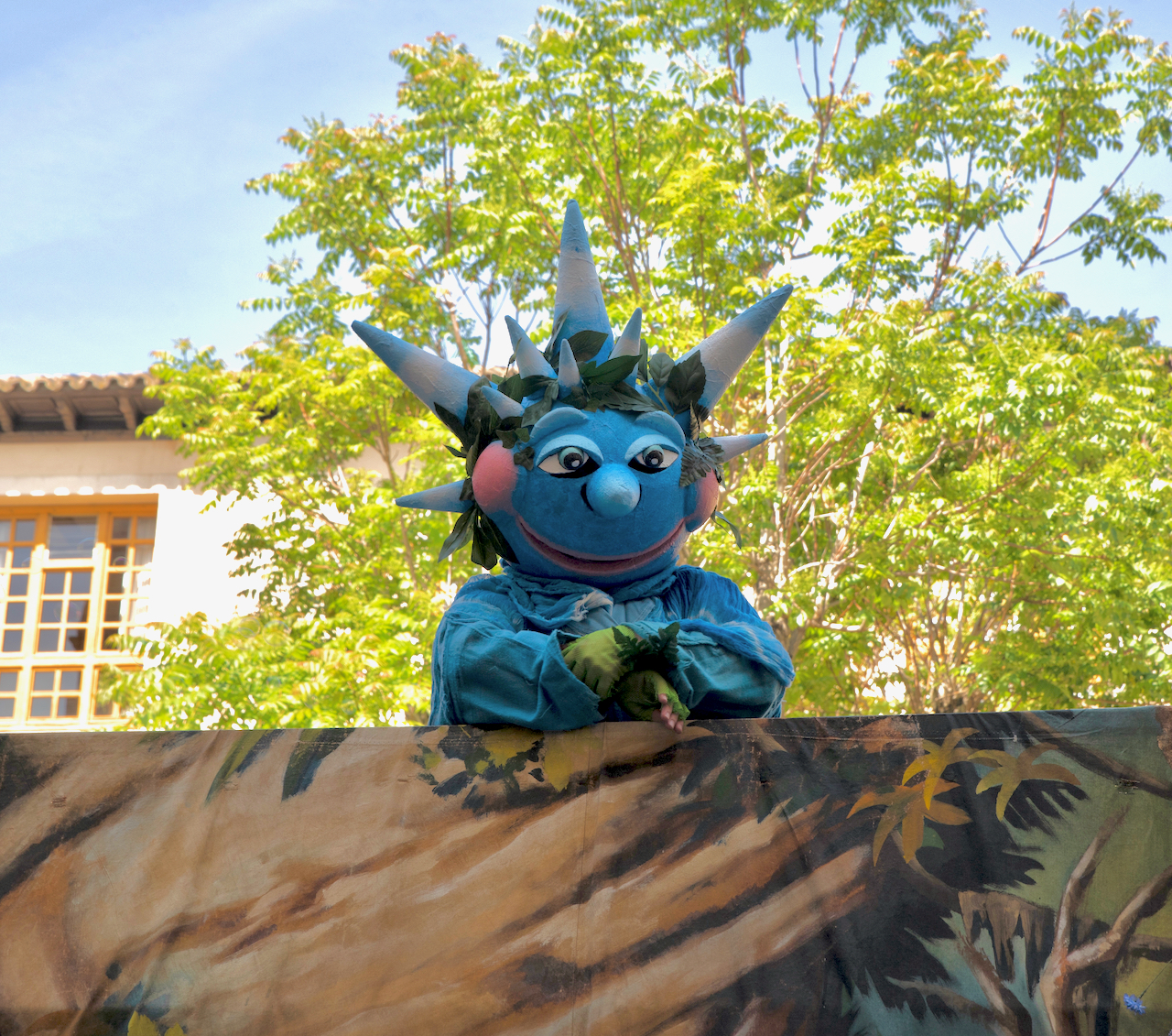 El Ebro niño que nace en las fuentes del Pico de los Tres Mares, se asoma y contempla divertido los seres que lo rodean y según la mitología lo cuidan, como ninfas y ondinas… Ranas, pececillos y muchas burbujas… juegan con él y en él.